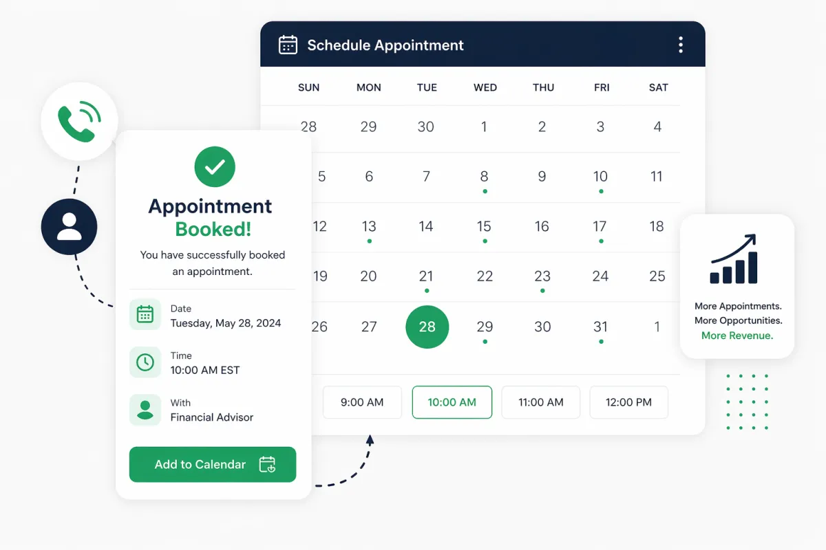You are calling a financial advisor in the US. We help advisors get in front of pre-qualified individuals with $250K–$1M+ in investable assets who are actively looking for an advisor.Your goal is to book a qualified appointment.